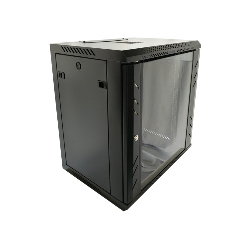圖騰壁掛機柜寬度為600mm,深度440mm和590mm可選,高度6U、9U、12U、15U、18U、22U可選。壁掛機柜標準配置無配件,可選配:風扇、托盤、腳輪、PDU等。